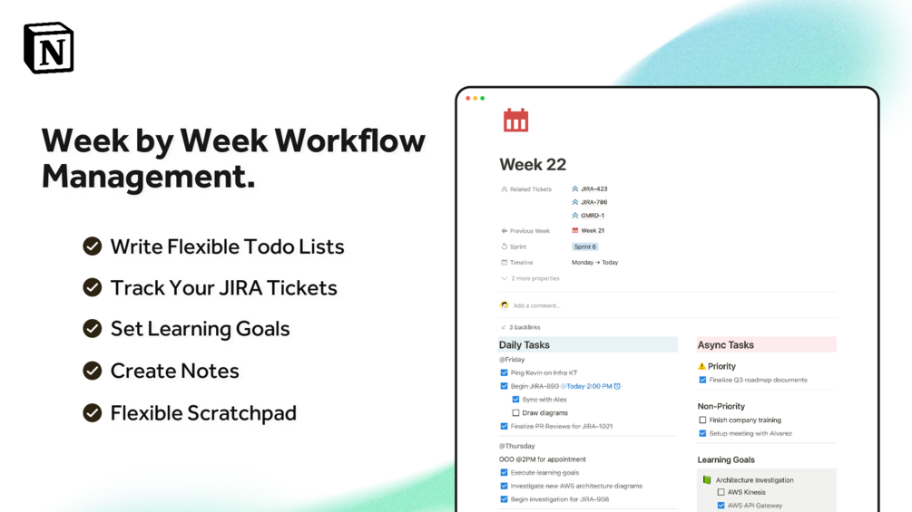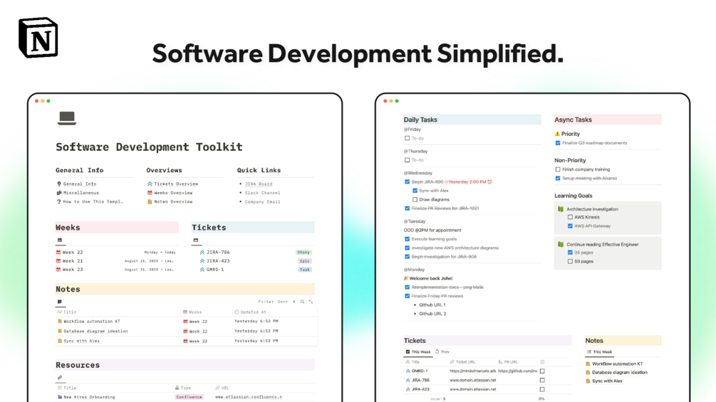 Leverages markdown, Notion icons, and intuitive colour coding to enhance ease of use.